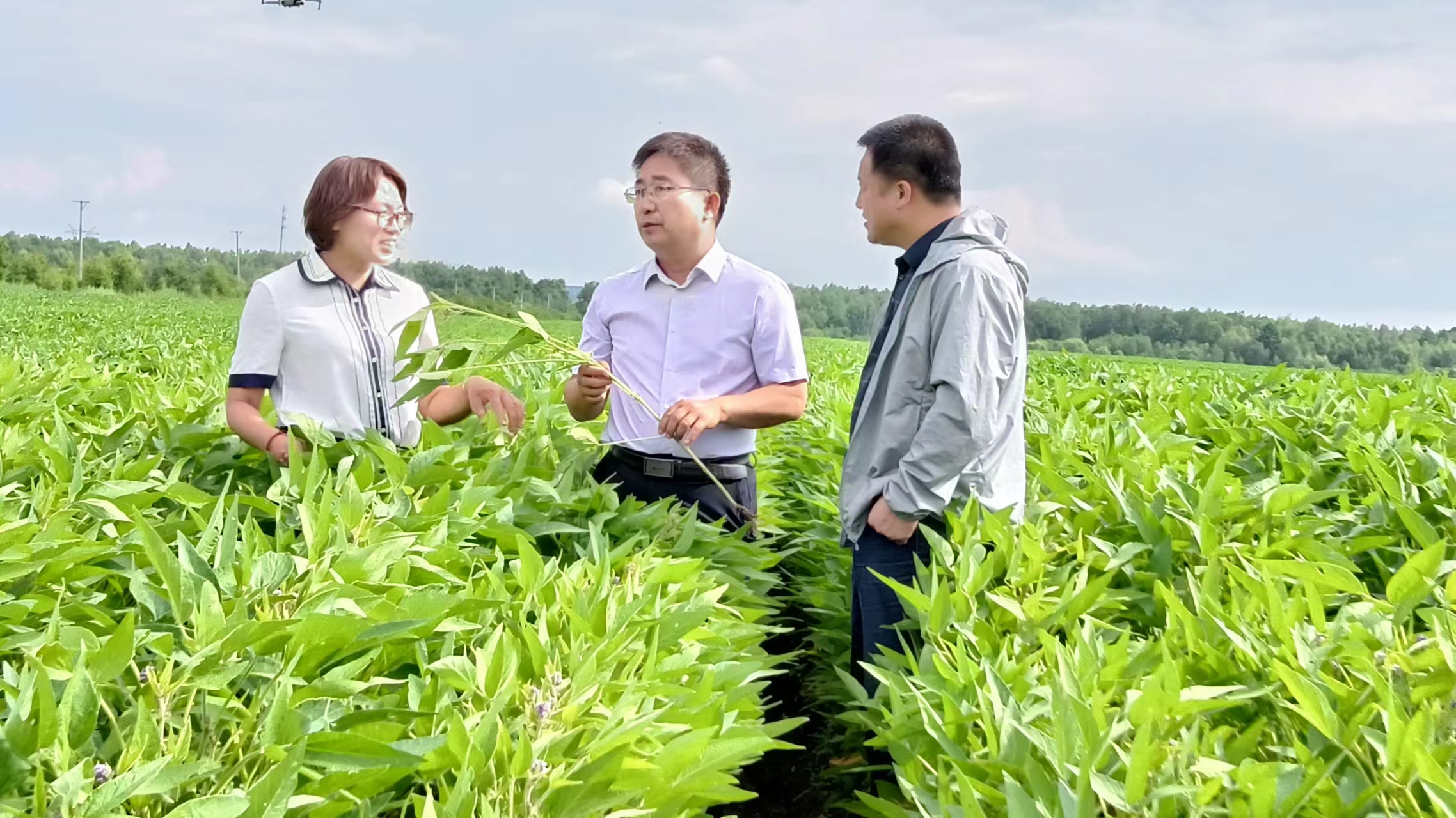 專家在查看大豆生長情況