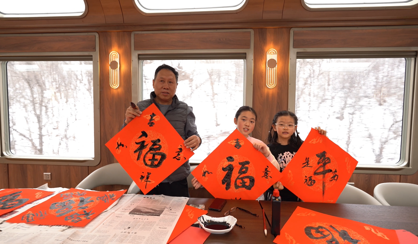 游客們自己動手寫春聯,在列車上過一個別樣春節(jié)