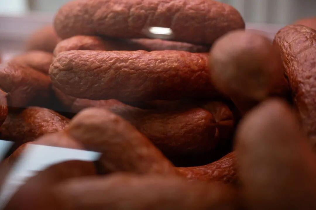 而在門店后方的生產(chǎn)車間,煙火氣正濃,機(jī)器的轟鳴聲與工人的忙碌身影交織,一派熱火朝天的保供景象?!傲璩块_工,一干就是一天,從天黑干到天黑是常態(tài)。”車間主任謝婷擦了擦額頭的汗,這位在崗位上堅(jiān)守17年的老員工,對(duì)每一道工序都熟稔于心。她告訴記者,為了讓大家吃上新鮮的紅腸,車間始終堅(jiān)持用料扎實(shí),甄選正規(guī)廠家大品牌鮮肉為原料,如今每日產(chǎn)量達(dá)10萬多根,用實(shí)打?qū)嵉漠a(chǎn)能扛起春節(jié)保供的責(zé)任。