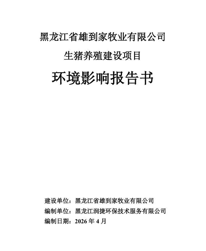 黑龍江省雄到家牧業(yè)有限公司生豬養(yǎng)殖建設(shè)項目環(huán)境影響報告書及公眾參與說明